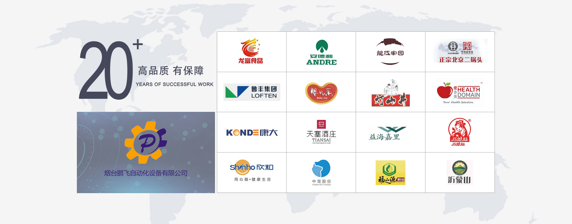 煙臺(tái)鵬飛自動(dòng)化設(shè)備有限公司 坐落于美麗的海濱城市--煙臺(tái),是一家專注于中低速貼標(biāo)機(jī)、食用油灌裝生產(chǎn)線等設(shè)備的研發(fā)、設(shè)計(jì)、生產(chǎn)、銷售、售后服務(wù)于一體的設(shè)備制造商。長(zhǎng)期以來,建立了一套完整的服務(wù)體系,公司擁有先進(jìn)的生產(chǎn)技術(shù),精湛的生產(chǎn)工藝,嚴(yán)格的質(zhì)量管理形成了強(qiáng)大的競(jìng)爭(zhēng)優(yōu)勢(shì),其產(chǎn)品暢銷全國(guó)十幾個(gè)省、市、自治區(qū),并遠(yuǎn)銷中亞五國(guó)埃及、緬甸、新加坡、智利等國(guó)家。